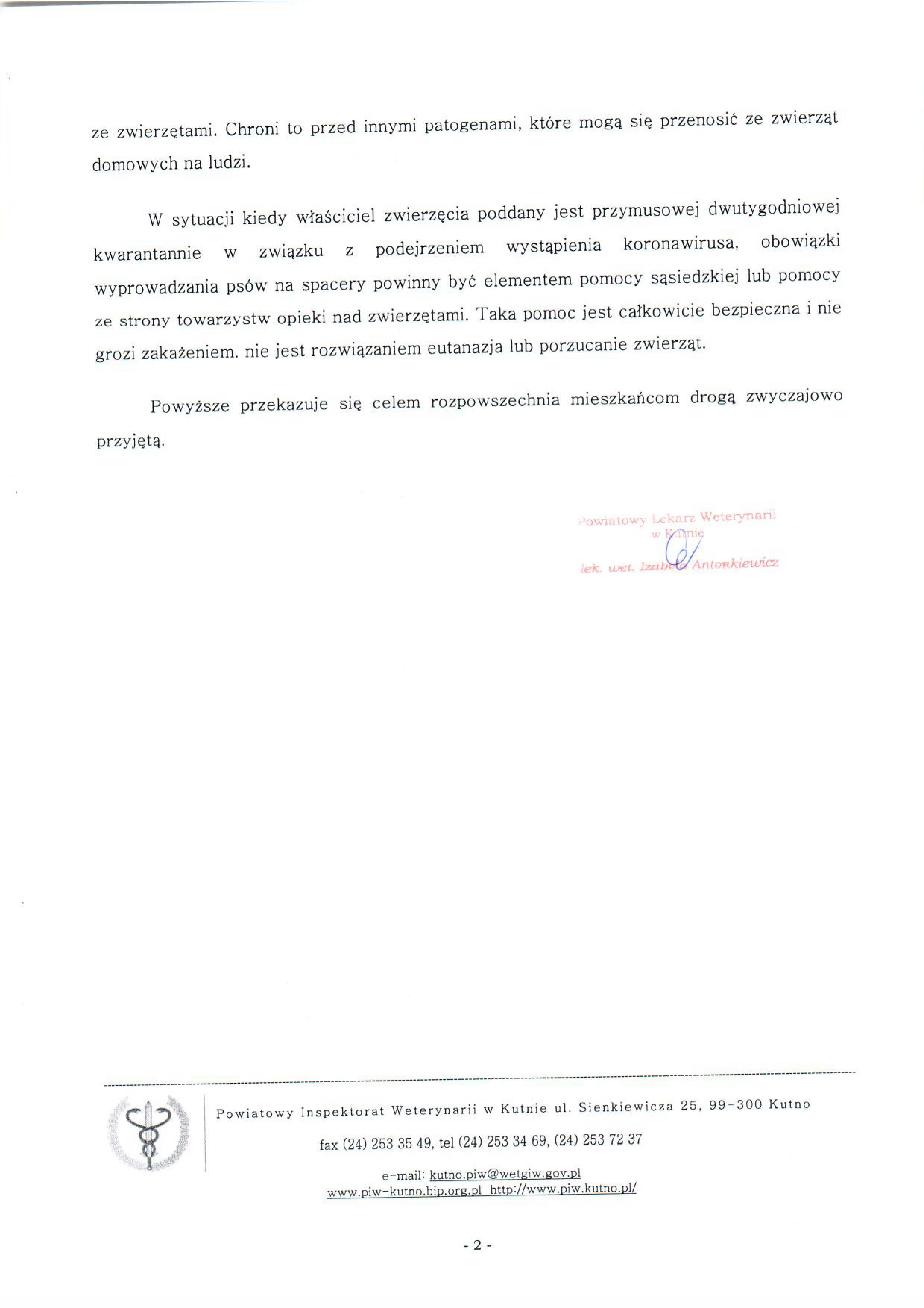 Informacja Powiatowego Lekarza Weterynarii