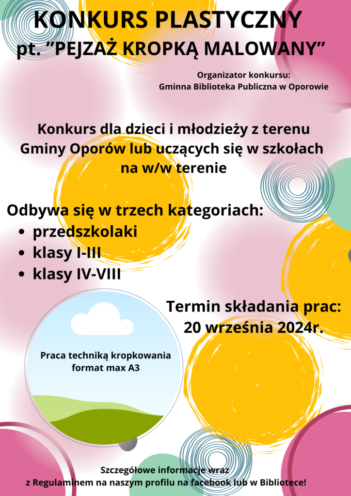 Gminna Biblioteka Publiczna w Oporowie ogłasza konkurs pn. „Pejzaż Kropką Malowany”