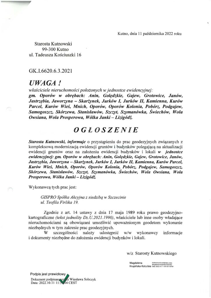 Ogłoszenie Starosty Kutnowskiego