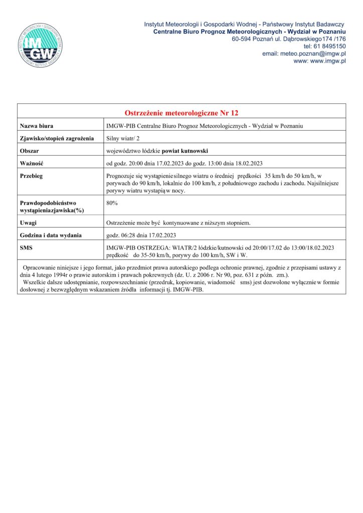 Nazwa biura IMGW-PIB Centralne Biuro Prognoz Meteorologicznych – Wydział w Poznaniu